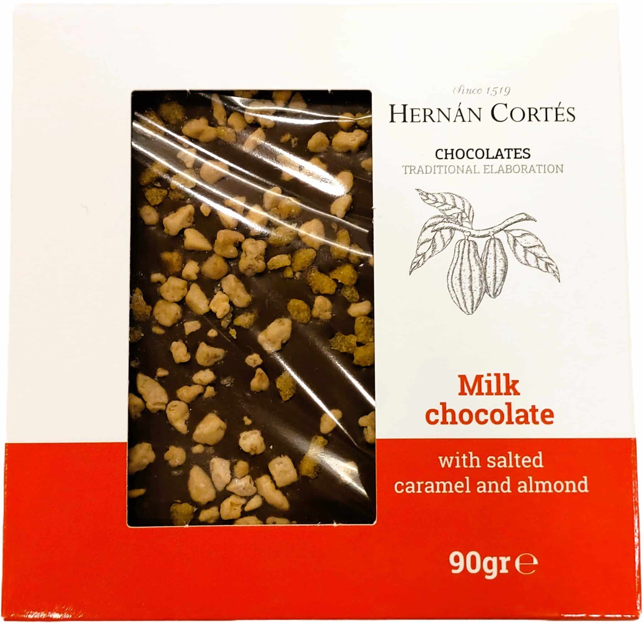 Σοκολάτα γάλακτος με Αλατισμένη Καραμέλα & Καραμελωμένα Αμύγδαλα 90γρ – Hernan Cortes
